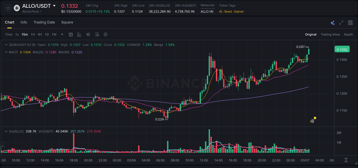 📑 #ALLO is ready for an aggressive rally from 🧮 0.1334 USDT. Volume expansion of buying activity exceeds all previous accumulation cycles with explosive growth potential, establishing ideal trading conditions