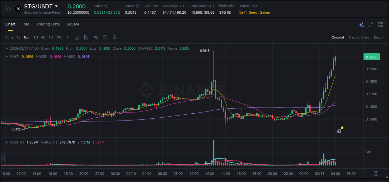 Asset #STG/USDT (Binance) reached 16.39% probability target