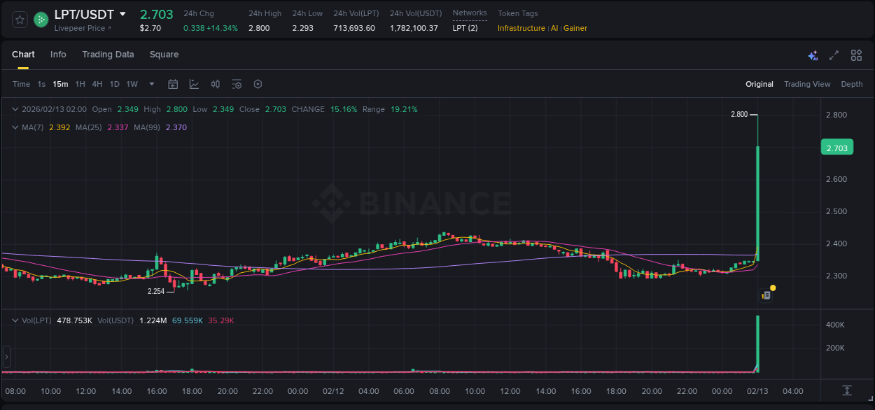 Trading pair #LPT/USDT (Binance) provided 16.41% ROI