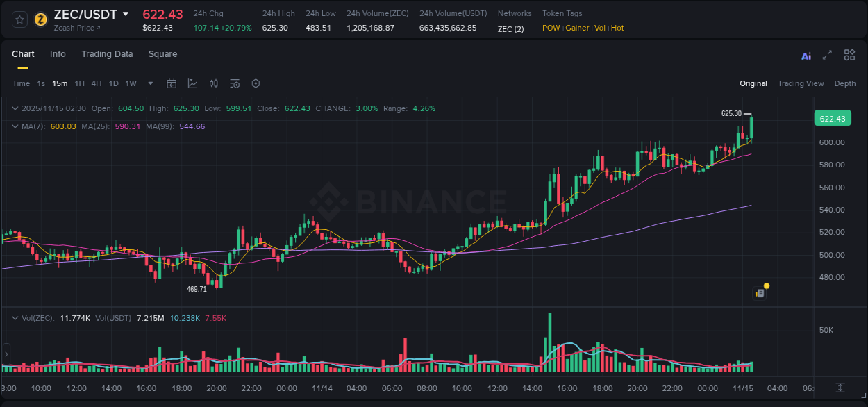 🧐 For #ZECUSDT at the price of 537.39 USDT, the MACD at 1.9565 and a volume change of 48% on the hourly timeframe confirmed that the price had successfully found its local bottom.
