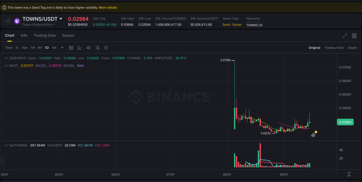 Operation with #TOWNS/USDT (Binance) generated 1.69% return