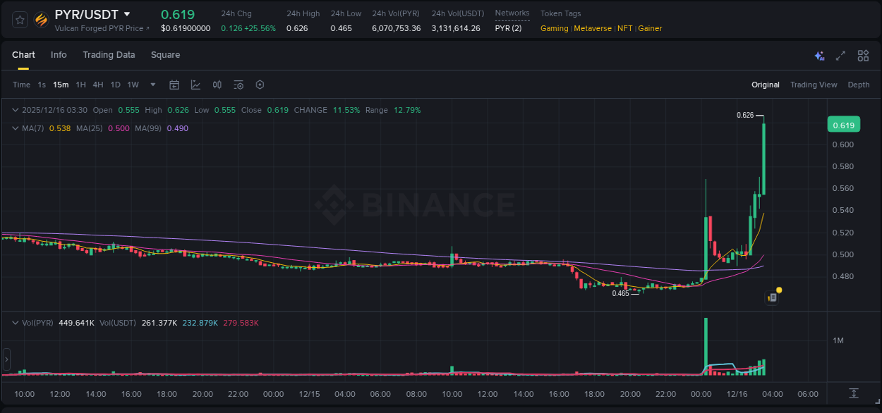 Instrument #PYR/USDT (Binance) provided 15.34% returns