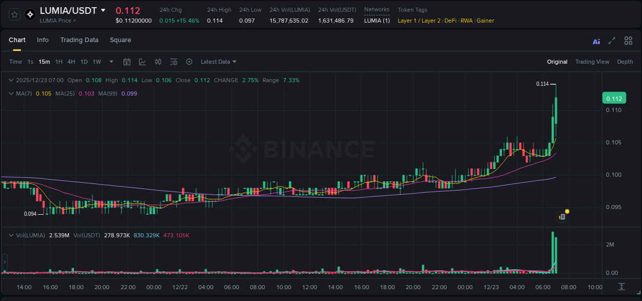 Position #LUMIA/USDT (Binance) executed with 15.31% efficiency