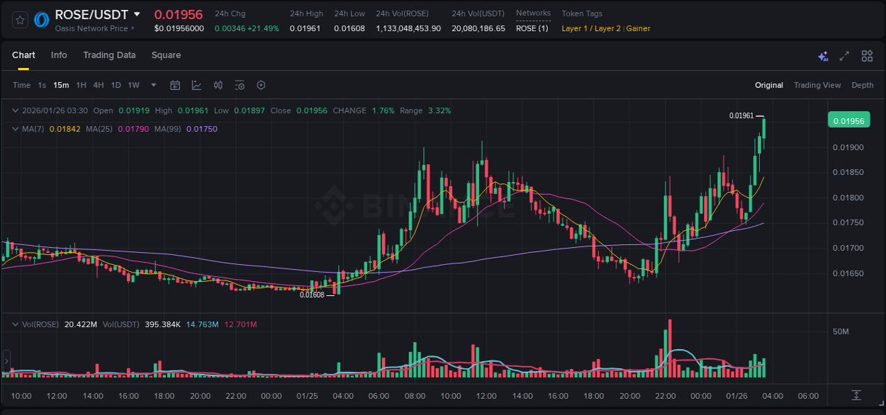 Instrument #ROSE/USDT (Binance) showed 19.5% efficiency