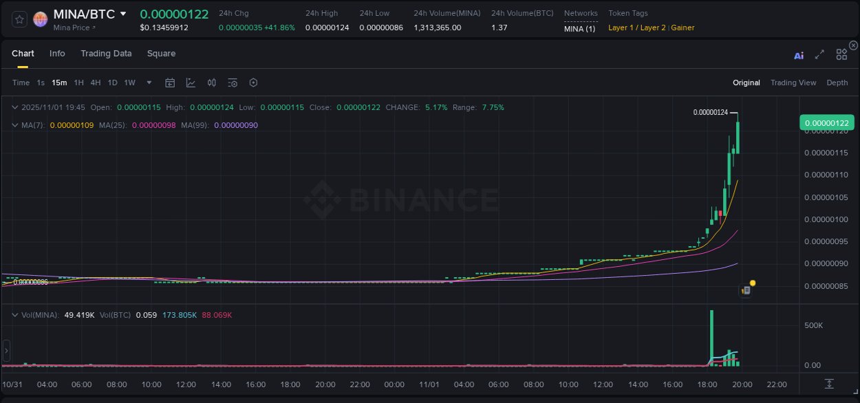 Attention! Look at the 👆chart with the 📊dynamics of the growth📈 in the price of the coin #MINA/BTC (Binance)👍