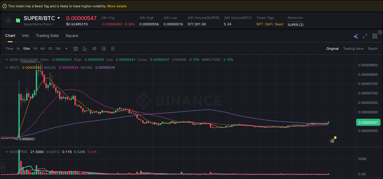 Instrument #SUPER/BTC (Binance) provided 5.32% returns