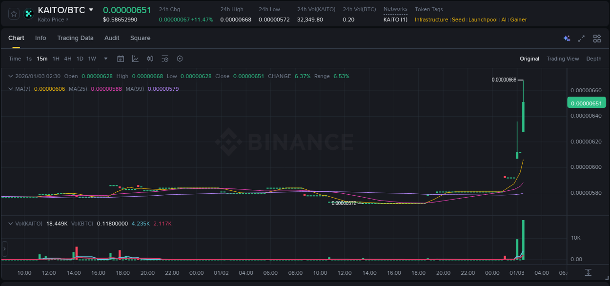 This is a report in real time of 🚀Pump coin 👉 #KAITO/BTC (Binance)