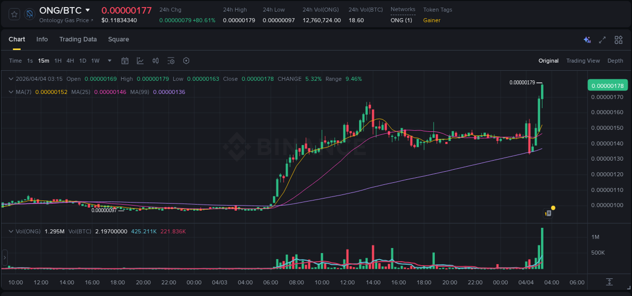 Instrument #ONG/BTC (Binance) showed 15.89% efficiency