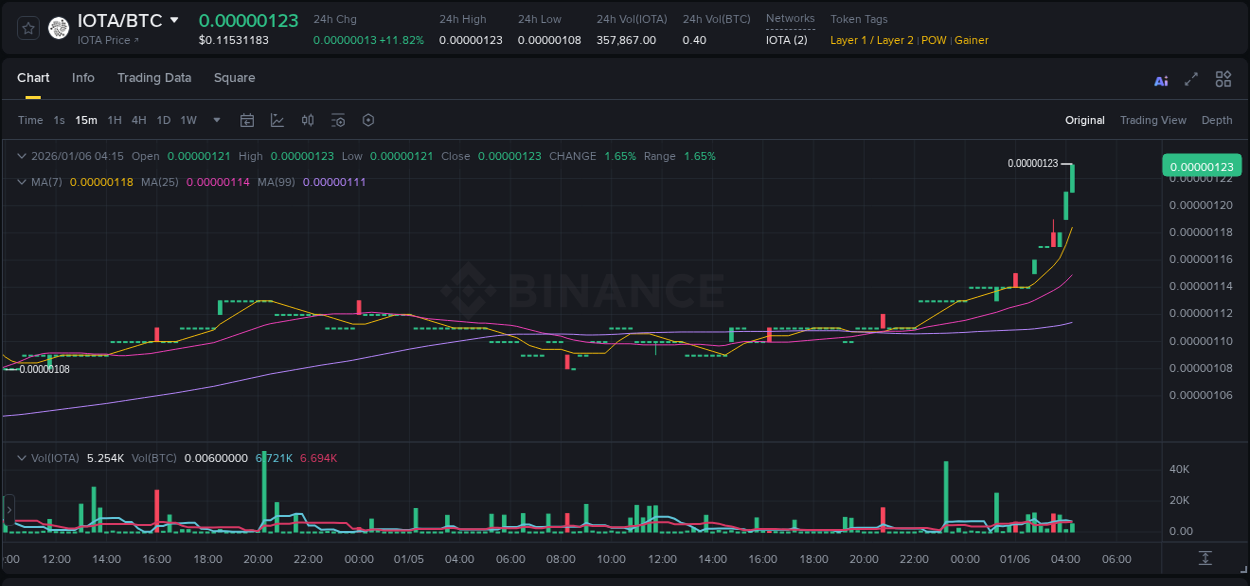 🧐 For #IOTABTC, the 0.00000106 BTC level represented the intersection of major institutional interest, which was observed across several trading venues simultaneously on the hourly timeframe.
