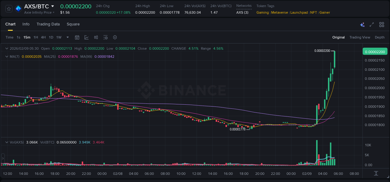 Trading pair #AXS/BTC (Binance) provided 15.67% ROI