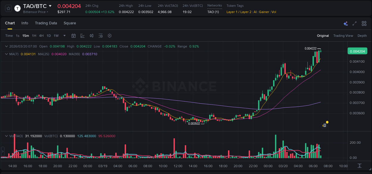 📈 #TAO sits at an optimal accumulation pocket. Critical concentration of buying liquidity creates prerequisites for explosive growth with minimum resistance. Committing capital at 🧮 0.00422104 BTC compounds returns as momentum accelerates