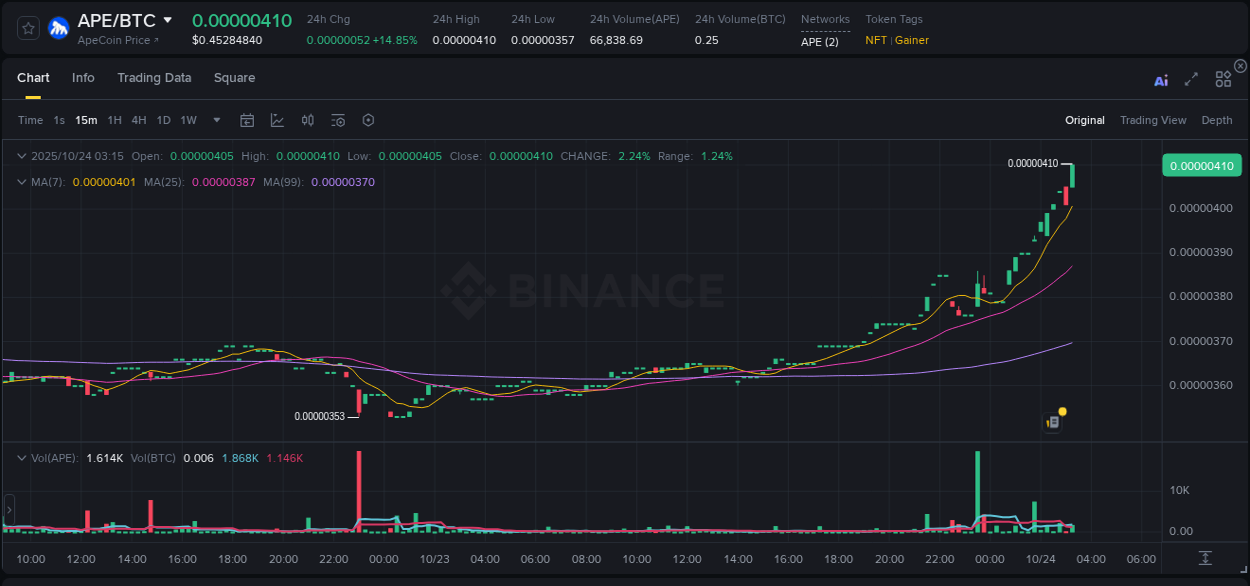 Asset #APE/BTC (Binance) showed 10.84% performance