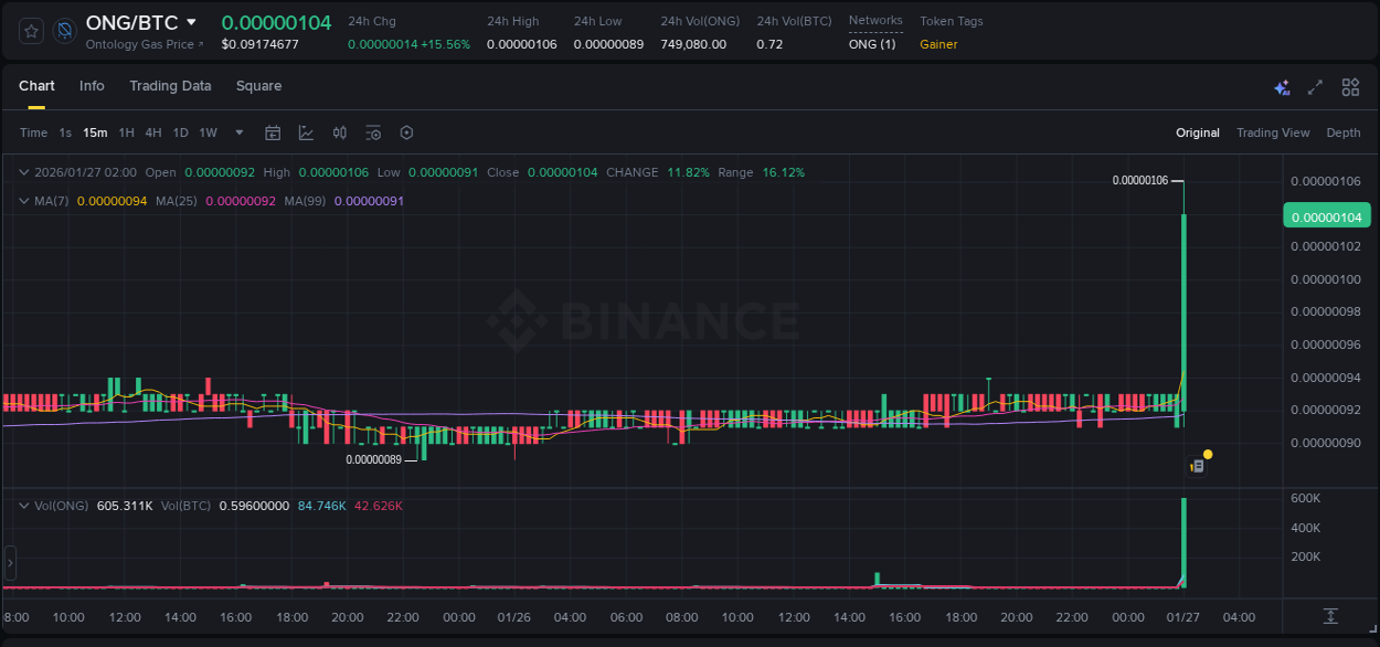 Operation with #ONG/BTC (Binance) generated 15.22% return