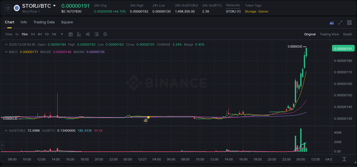 Trade #STORJ/BTC (Binance) capitalized on 15.76% inefficiency
