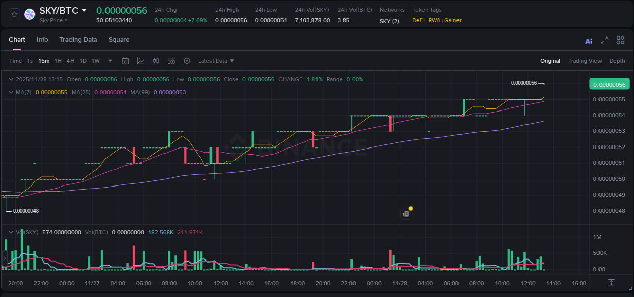 🔄 🤖AI systems flag critical upside signals in #SKY. Institutional capitulation of short positions releases colossal potential for buying pressure. Committing funds at 🧮 0.00000058 BTC is a high-speed 🚀 profit play