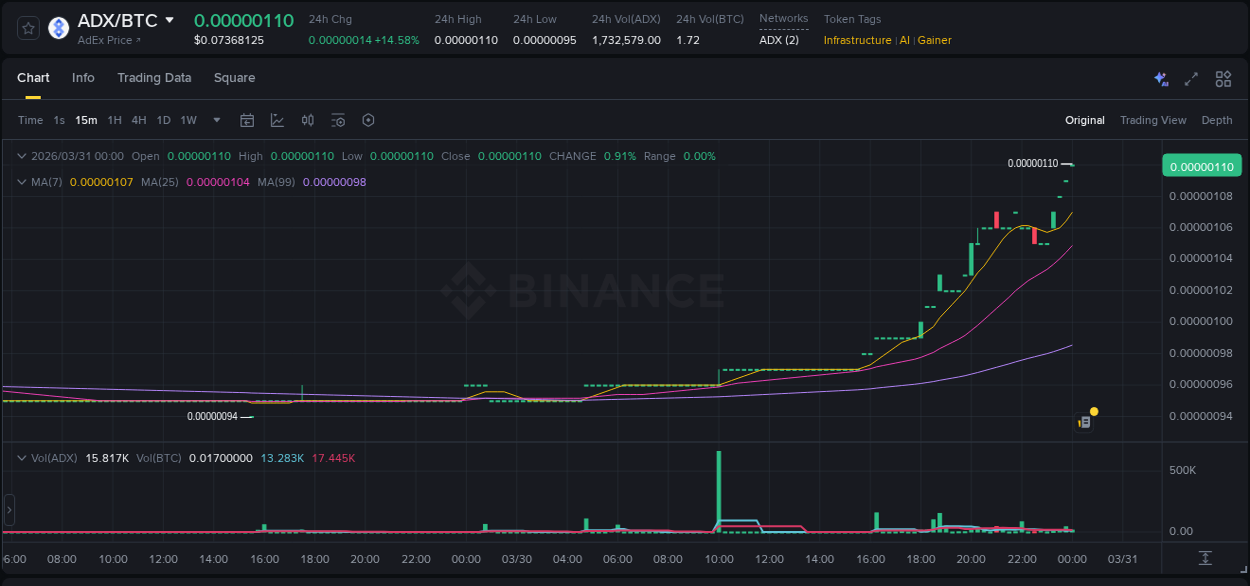 Position #ADX/BTC (Binance) closed with 15.79% yield